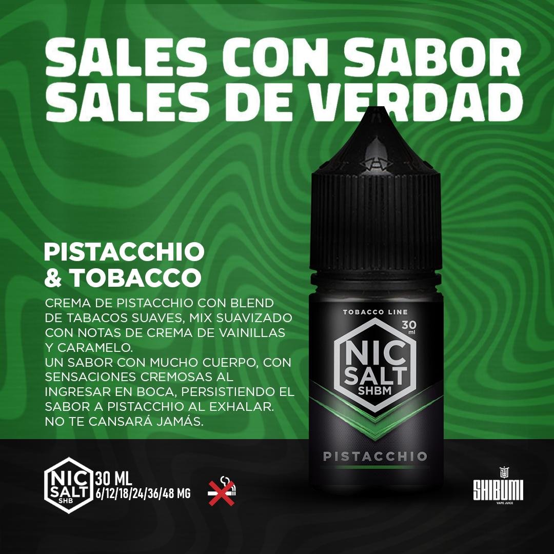 SHIBUMI SAL PISTACCHIO Y TOBACCO Un sabor con mucho cuerpo, con sensaciones cremosas al ingresar en boca, persistiendo el sabor a pistacchio al exhalar. No te cansará jamás.